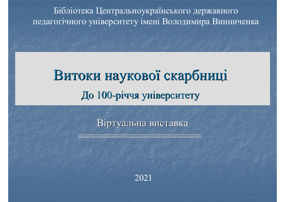 Колектив нашого університету має давню історію, багату своїми традиціями. В процесі розвитку нашого вищого навчального закладу життя освітянського колективу відзначалося багатогранністю та насиченістю. Можна сказати, що історія тісно пов’язана з плідною науковою та викладацькою діяльністю багатьох поколінь чудових педагогів та наставників, досягненнями випускників, які прославили свою Alma Mater. Роками складався потужний науковий, інтелектуальний та творчий потенціал. Підтвердженням цьому можуть стати Наукові записки нашого ВНЗ за всі роки, започатковані в середині XX ст. Співробітники бібліотеки запрошують користувачів ознайомитися з науковим доробком викладачів Центральноукраїнського державного педагогічного університету (на момент виходу збірника – КДПІ ім. О. С. Пушкіна). Перший том датовано 1951 р. Серед авторів є: С. К. Королюк, директор КДПІ ім. О. С. Пушкіна, ст. викладач кафедри географії; В. І. Галицький – канд. геогр. наук, Н. Ф. Галицька – канд. геогр. наук; М. М. Лепський – канд. фіз.-мат. наук, І. І. Слинько – ст. викладач, М. Є. Беркович – канд. іст. наук.