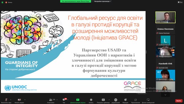Загальною метою ініціативи Управління ООН GRACE (Global Resource for Anti-Corruption Education and Youth Empowerment — Глобальний ресурс для освіти в галузі протидії корупції та розширення можливостей молоді) стало формування світогляду та мислення наступного покоління шляхом створення культури несприйняття корупції серед дітей та молоді й з використанням трансформаційної сили освіти й безперервного навчання та інновацій.