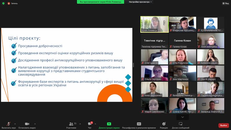 Уповноважена особа з питань запобігання та виявлення корупції в Центральноукраїнському державному педагогічному університеті ім. В. Винниченка доцент Олена Окопник з 20 по 23 червня 2022 р. проводила онлайн-зустрічі з науково-педагогічним складом кожного з п’яти факультетів університету.