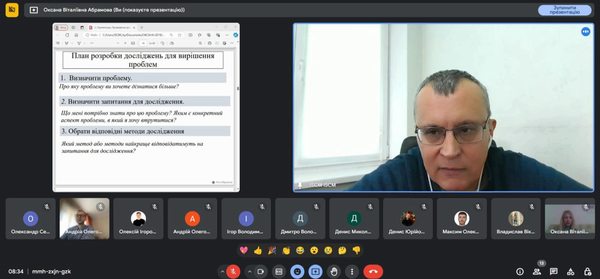 17 жовтня 2024 року в онлайн-форматі відбулася гостьова лекція на тему «Планування та організація досліджень: етапи, інструменти та методи» в межах викладання освітнього компоненту «Інформаційні технології в науці», яка є нормативною для здобувачів третього (освітньо-наукового) рівня вищої освіти Центральноукраїнського державного університету імені Володимира Винниченка. Під час лекції аспіранти ознайомилися з особливостями планування та проведення досліджень. Гостьовим лектором виступив випускник нашого університету Лев Абрамов – директор ГО «КООГ «Інститут соціокультурного менеджменту», тренер, експерт із організаційного розвитку та досліджень із 25-річним досвідом роботи, консультант низки громадських, державних та міжнародних організацій.
