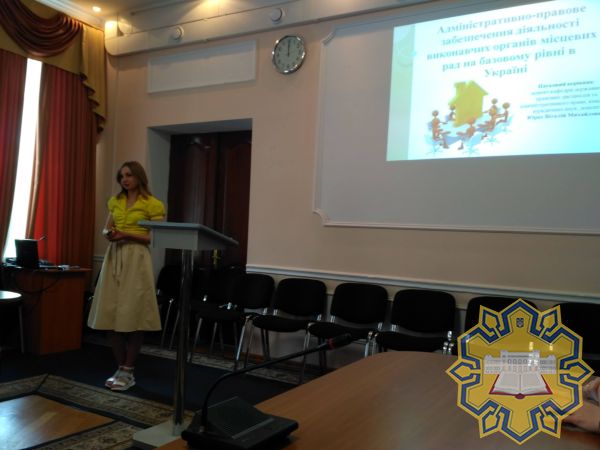 - аспірант кафедри державно-правових дисциплін та адміністративного права Юлія Миколаївна Ковальчук доповідь на тему «Адміністративно-правове забезпечення діяльності виконавчих органів місцевих рад на базовому рівні України».
