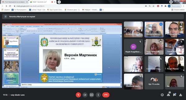 - к.пед.н., доц. В.А. Мартинюк: «Освітній хаб як засіб навчання учнів зпто багатомовної професійної комунікації» (Чернівецьке вище комерційне училище КНТЕУ);