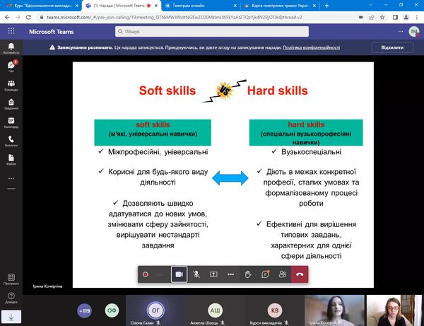 – Необхідність формування м’яких навичок викладача в умовах дистанційного /змішаного навчання. Soft skills & Hard Skills компетенції: особливості/відмінні риси;