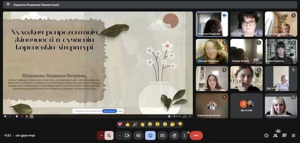 Під час лекції було розглянуто специфіку фемінності в контексті корейської культури та модернізаційних процесів, а також проаналізовано образи жінок у трьох ключових творах сучасної корейської літератури: роман Хан Канг "Вегетаріанка" - як приклад бунту проти патріархальних норм і спроби особистісного визволення; роман Шін Гьонсук "Прошу, оберігай маму" - як зображення жінки-матері, уособлення жертовності та родинних цінностей; роман Чо Намджу "Кім Джійон. 1982 року народження" - як хроніка жіночого досвіду в умовах сучасного корейського суспільства.