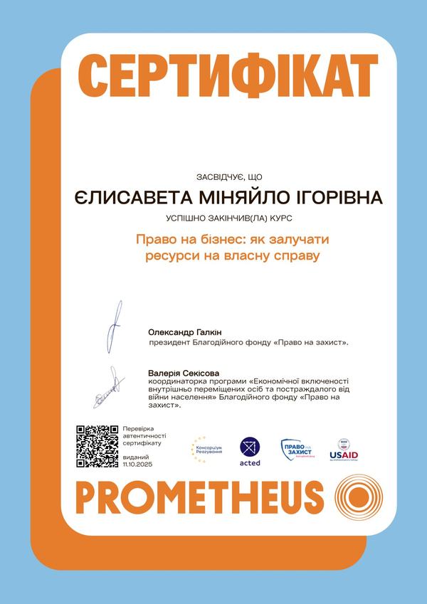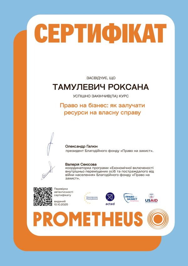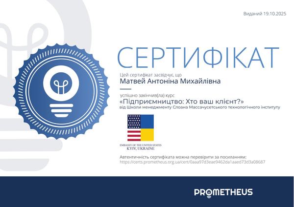За результатами проходження навчання студентки успішно отримали відповідні сертифікати, що засвідчують їхні знання та практичні навички у сфері підприємництва, клієнтоорієнтованості та управління бізнес-ресурсами.