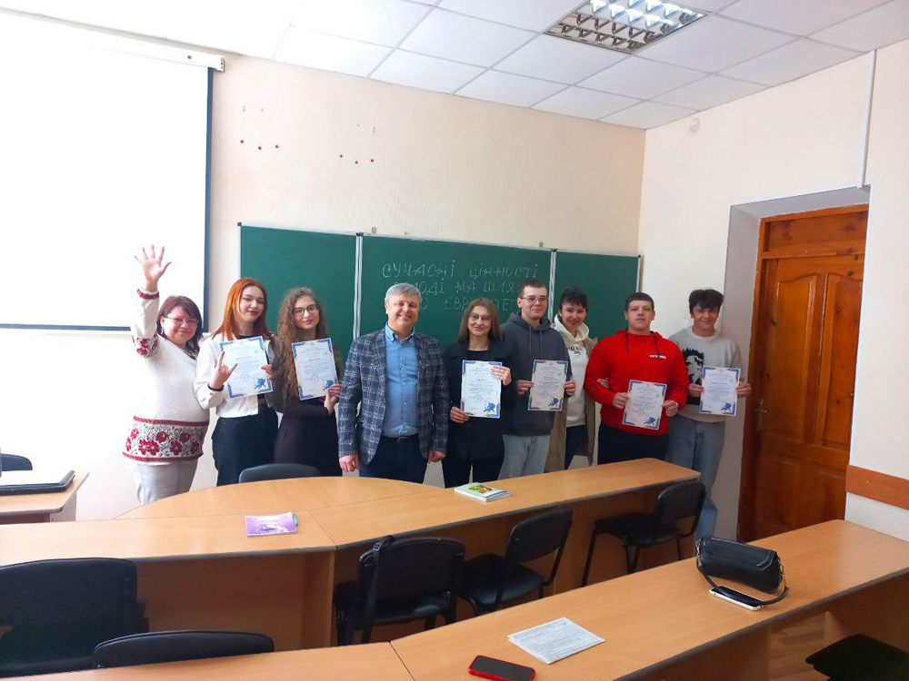 У заході взяли участь викладачі кафедри менеджмент та підприємництво та здобувачі вищої освіти спеціальностей 051 Економіка та 073 Менеджмент, які долучилися до обговорення ключових європейських цінностей, що формують світогляд молодого покоління: демократія, свобода, рівність, інклюзія, екологічна свідомість та підприємницька ініціативність.