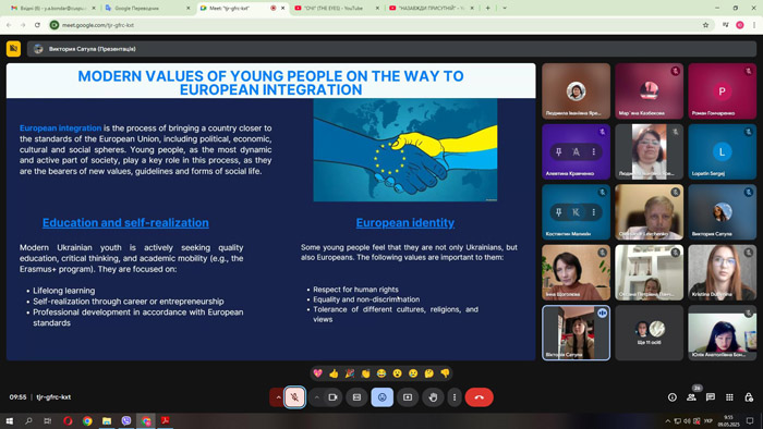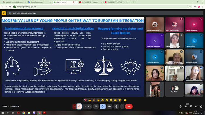 До Дня Європи 9 травня 2025 року на базі англомовного гуртка кафедри менеджменту та підприємництва "Creative Communication" відбувся пізнавальний захід на тему: "Modern Youth Values on the Way to European Integration" («Сучасні цінності молоді на шляху до євроінтеграції»).