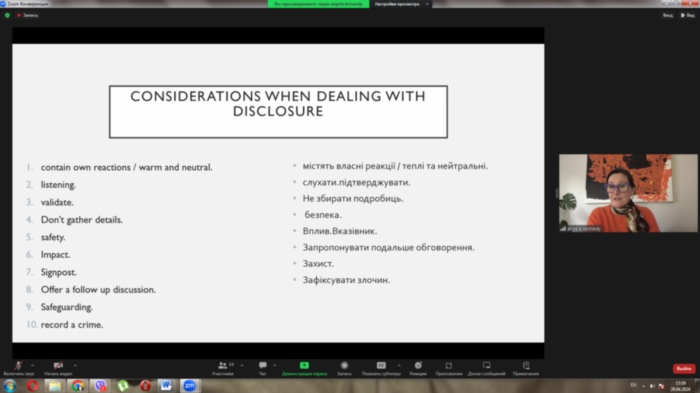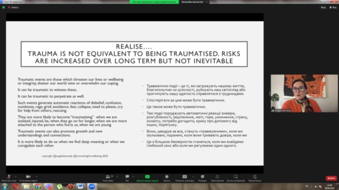 Вони також дізналися про травмоінформовані практики докторки Анжели Кеннеді з Британської Спілки дій після травми,