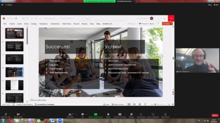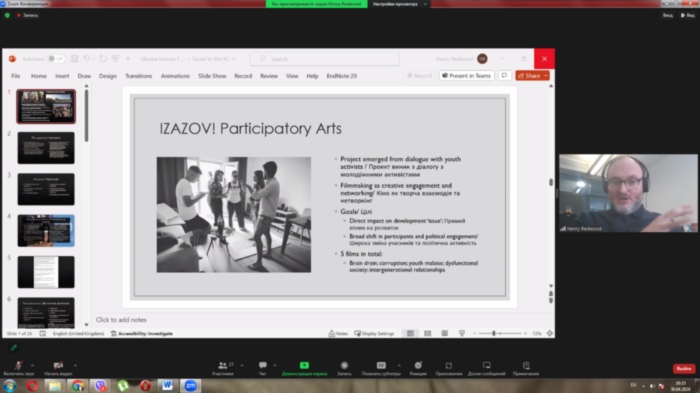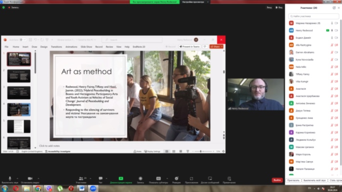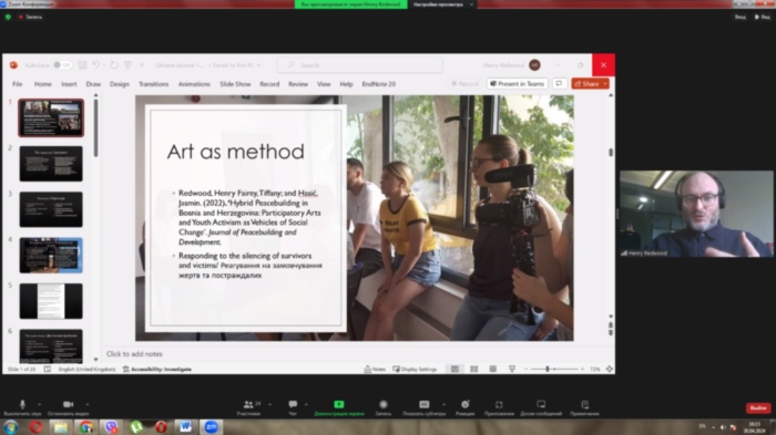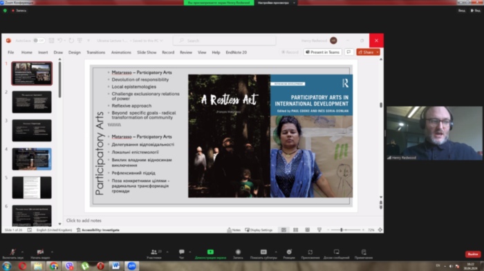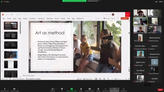Студенти ознайомилися з досвідом професора Единбурзького університету Найджела Осборна, який 20 років працює з дітьми в зонах конфліктів, застосовуючи свою методику мистецтва для подолання кризових станів.