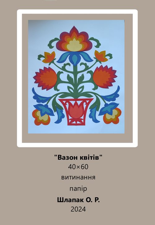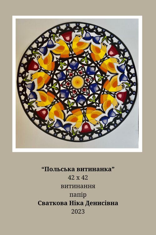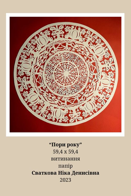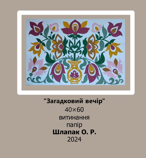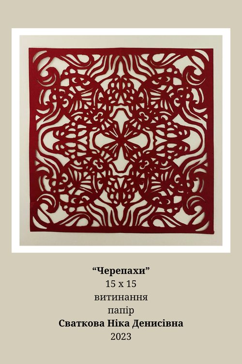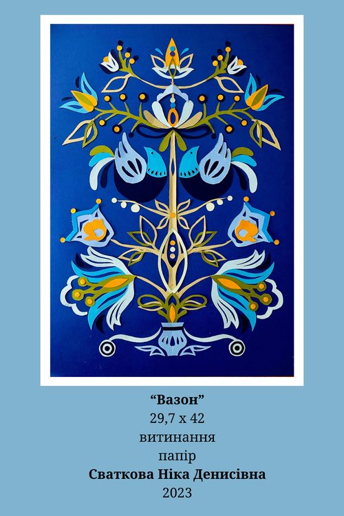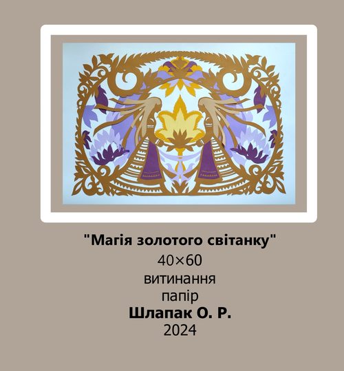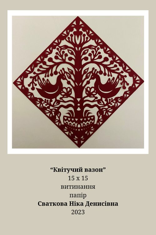 Шлапак Ольга (МР21Б) та Сваткова Ніка (МР20б) своїми творами продемонстрували володіння художньою технікою – витинання. У творах молодих майстринь простежується використання української орнаментики, традиційної техніки та технології вирізання. Їх художньо-мистецькі прийоми спираються на досвід багатьох поколінь майстрів традиційного народного мистецтва.