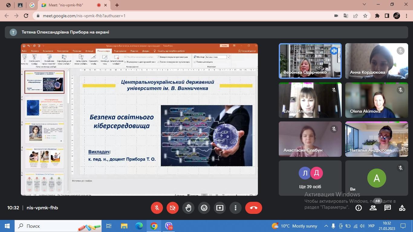 21 березня 2023 року у Google Meet була проведена гостьова лекція «Безпечне освітнє кіберсередовище» для магістрантів та бакалаврів спеціальності 013 Початкова освіта та 011 Освітні педагогічні науки.
