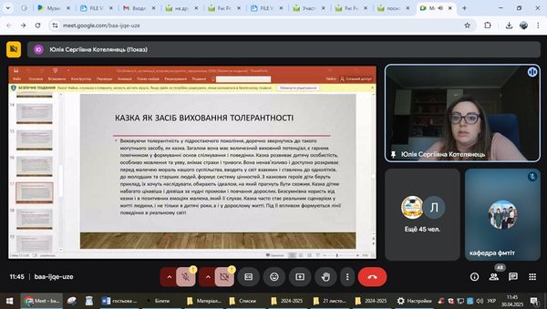 30 квітня 2025 року в межах підготовки майбутніх учителів початкової школи відбулася гостьова лекція на тему «Формування мультикультурного середовища в НУШ», яку провела Котелянець Юлія Сергіївна — доктор педагогічних наук, доцент кафедри дошкільної та початкової освіти для здобувачів освіти Уманського державного педагогічного університету імені Павла Тичини спеціальності «Початкова освіта». Захід організовано з метою розширення професійного світогляду студентів, ознайомлення їх із сучасними тенденціями розвитку шкільної освіти в контексті культурного різноманіття та утвердження цінностей толерантності, інклюзії й педагогіки співпраці.