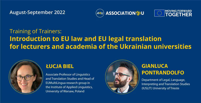 серпень 2022 – Łucja Biel, an Associate Professor of Linguistics and Translation Studies and Head of EUMultiLingua research group in the Institute of Applied Linguistics, University of Warsaw, Poland. She is an editor-in-chief of the Journal of Specialised Translation and a board member of the European Society for Translation Studies. She has published extensively on EU/legal translation, legal terminology, translator training and corpus linguistics: лекції “EU legal translation I”, “EU legal translation IІ”;