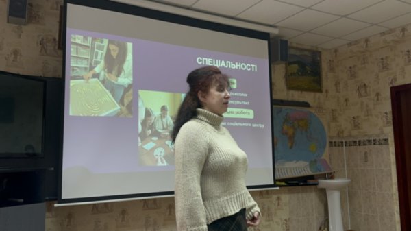 Під час заходу було акцентовано увагу на спеціальності 053 Психологія, розкрито потребу сучасного українського суспільства в умовах війни у високоякісних спеціалістах зі збереження психологічного і ментального здоров’я. Студентки Шароварова Вікторія і Мазур Анастасія поділились із здобувачами освіти власним позитивним досвідом навчання в нашому ЗВО: високим рівнем отриманих теоретичних знань, практичних умінь та початком професійної реалізації в практичній психології.