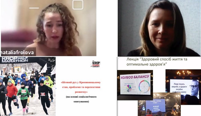 - «Біговий рух у м. Кропивницькому: стан, проблеми і перспективи розвитку» - Наталія Фролова, засновниця бігової спільноти м. Кропивницького, координаторка програми «Активні парки», магістр спеціальності 017 «Фізична культура і спорт».