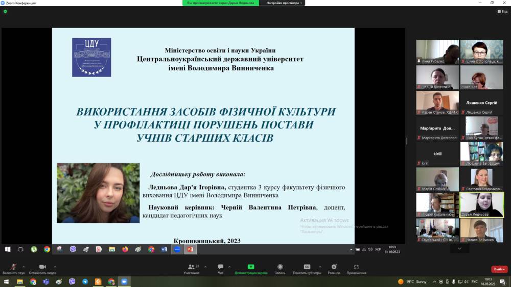 17-18 травня 2023 року кафедра теорії і методики фізичного виховання Центральноукраїнського державного університету імені Володимира Винниченка мала честь зібрати обдаровану студентську молодь на ХХІ Всеукраїнську студентську науково-практичну конференцію «Актуальні проблеми фізичної культури, олімпійського й професійного спорту та реабілітації у навчальних закладах України», яка відбулась в очному форматі. У ній взяли участь студенти: Центральноукраїнського державного університету імені Володимира Винниченка, Національного університету фізичного виховання і спорту України (м. Київ), Національного університету «Чернігівський колегіум» імені Т. Г. Шевченка (м. Чернігів), Глухівського національного педагогічного університету імені Олександра Довженка (м. Глухів), Придніпровської державної академії фізичної культури і спорту (м. Дніпро), ДВНЗ «Донбаський державний педагогічний університет» (м. Слов’янськ), Хмельницького національного університету, Криворізького державного педагогічного університету (м. Кривий Ріг).