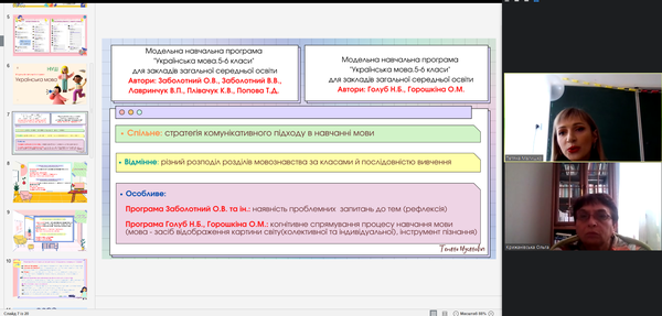 Викладачі кафедри, серед яких доцент Ольга Іванівна Крижанівська, висловили цікаві й креативні думки, розглядаючи питання про врахування вимог і завдань Нової української школи в освітньо-професійних програмах Середня освіта (Українська мова і література та Мова і література (англійська), Середня освіта (Українська мова і література) та Психологія (практична психологія).