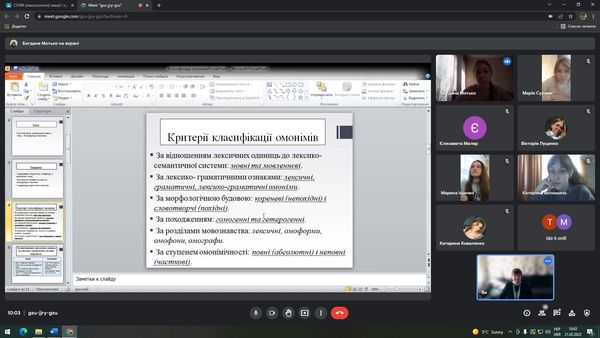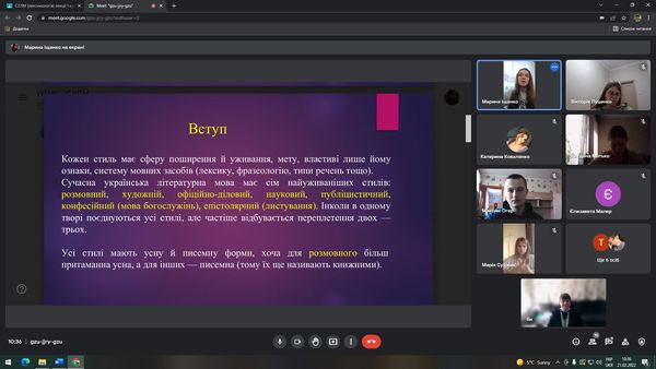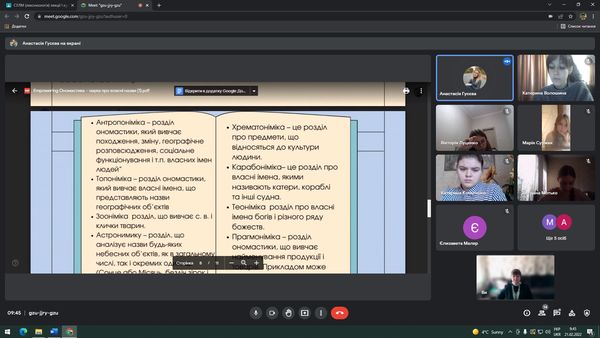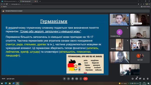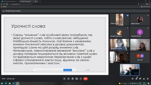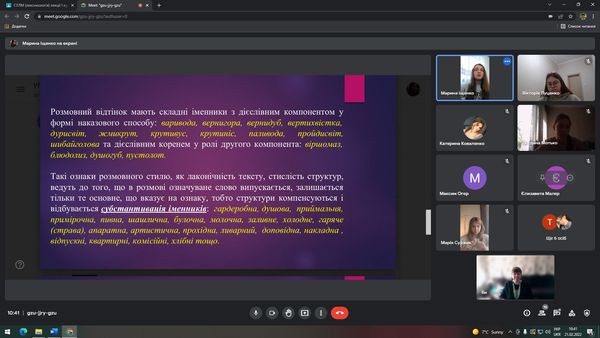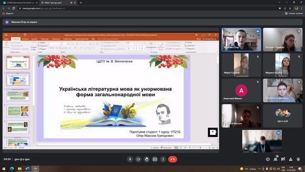 У конкурсі взяли участь 11 першокурсників факультету української філології, іноземних мов та соціальних комунікацій: Вікторія Луценко, Максим Огер, Анастасія Манич, Катерина Волошина, Анастасія Гусєва, Марія Суржик, Богдана Мотько, Тетяна Ткачук, Єлизавета Маляр, Катерина Коваленко та Марина Іщенко. Вони підготували цікаві й змістовні доповіді з мультимедійними презентаціями про українську мову як національну, як унормовану форму загальнонародної, про види філологічних словників та книжну лексику, про ономастику та етимологію як окремі галузі науки. Присутніх ознайомили з основними аспектами розвитку української лексикографії в ХІХ столітті, з головними класифікаціями омонімів, із тропами – метафорою, метонімією, синекдохою, що є типами переносних уживань слів, з групами лексем, запозичених у різні часи з німецької мови, з особливостями лексики розмовного стилю. За умовами конкурсу кожен учасник відповів на два запитання.