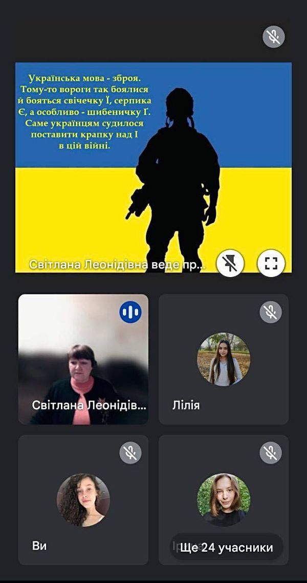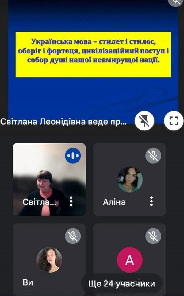 Присутні познайомилися з актуальними крилатими словами та плакатами про мову, переглянули кілька фрагментів із документального фільму «Соловей співає», мали змогу поділитися враженнями, висловитися про те, що їх найбільше турбує в непросту історичну пору.