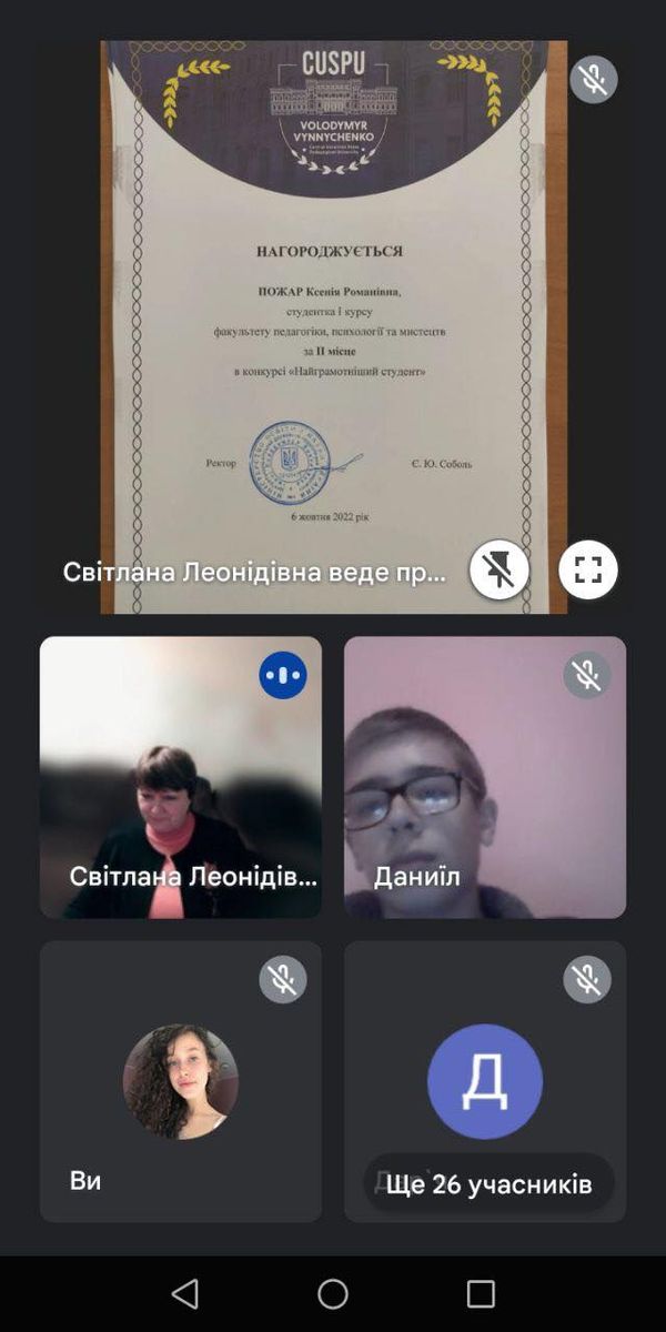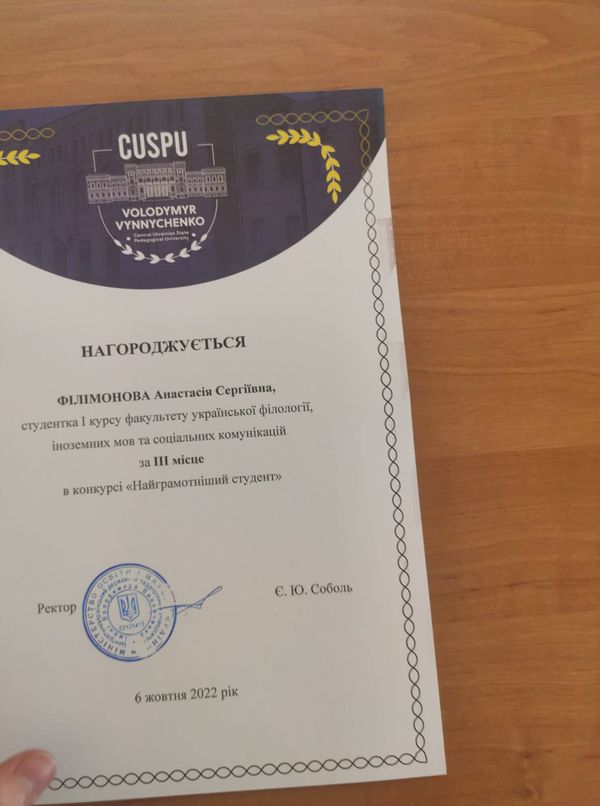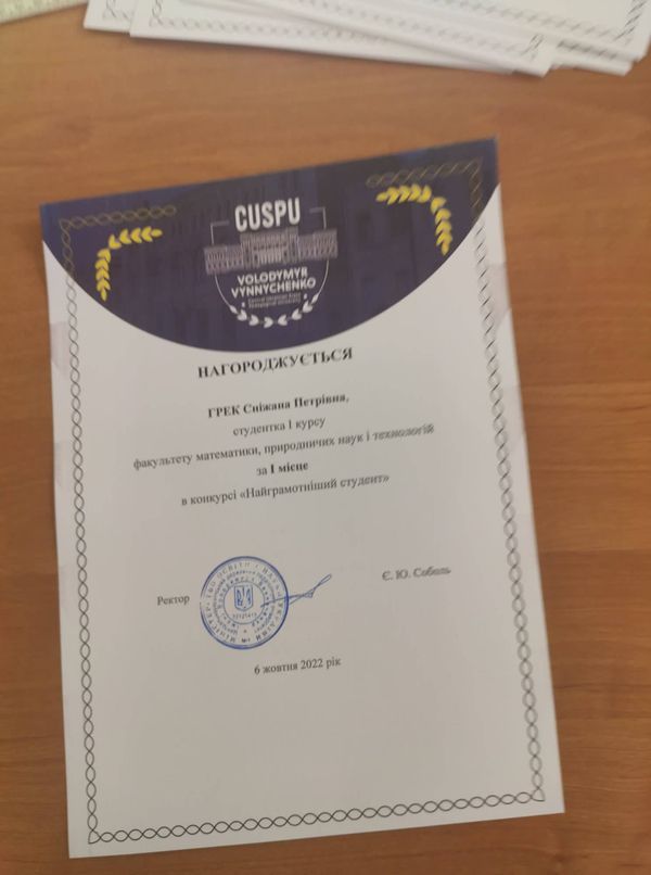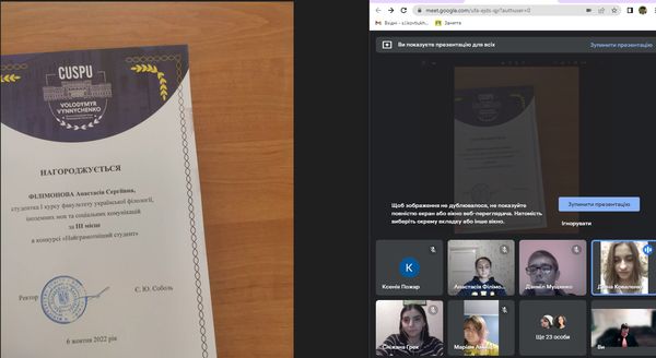 2 листопада 2022 року на безкрайніх, як українські степи, просторах інтернету в спеціально створеному гугл-класі відбулась урочиста церемонія нагородження переможців конкурсу «Найграмотніший студент університету».
