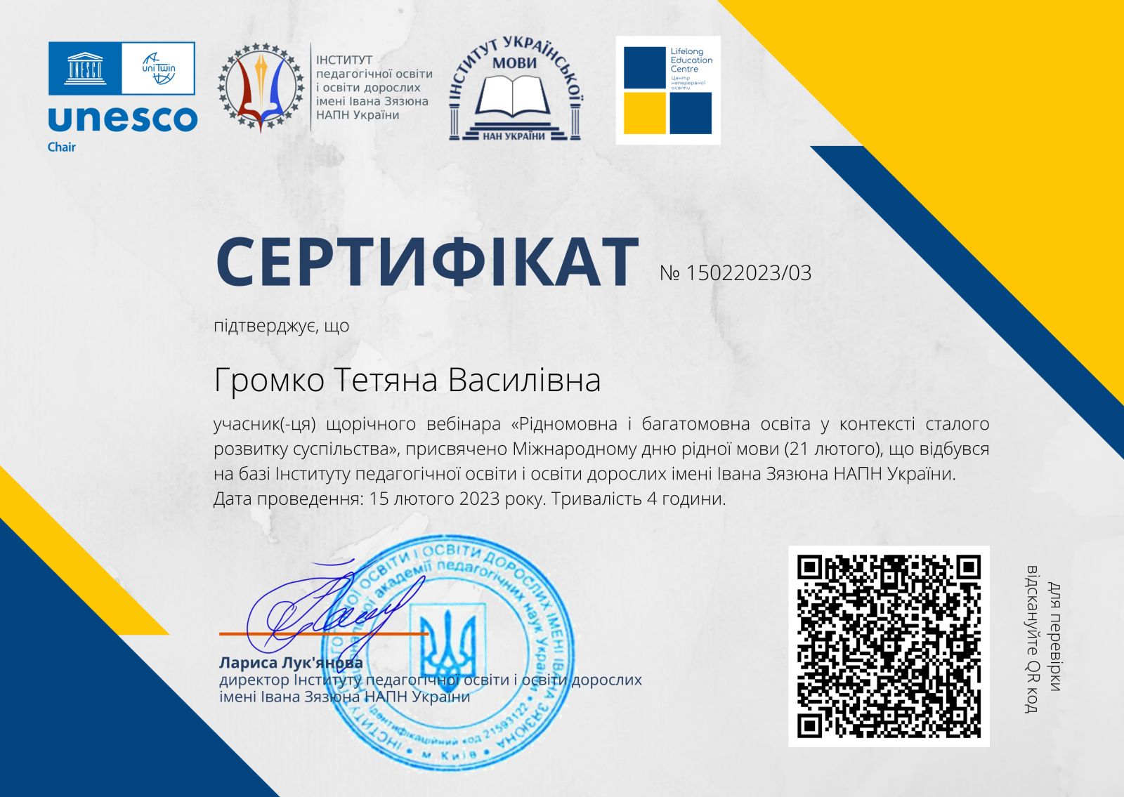 У рамках його святкування 15 лютого 2023 року на базі Інституту педагогічної освіти і освіти дорослих імені Івана Зязюна НАПН України відбувся онлайн-вебінар «Рідномовна та багатомовна освіта у контексті сталого розвитку суспільства». Серед учасників вебінару були громадські діячі, науковці, студенти, магістранти, аспіранти, докторанти, викладачі закладів фахової передвищої і вищої освіти, викладачі і методисти інститутів післядипломної педагогічної освіти, учителі загальноосвітніх і дошкільних закладів.