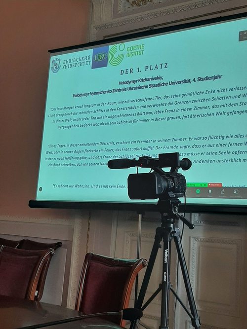 Студент Володимир Крижанівський посів 1 місце з-поміж 48-ми учасників і виборов головний приз конкурсу – запрошення від Goethe Institut в Україні на поїздку до Німеччини!