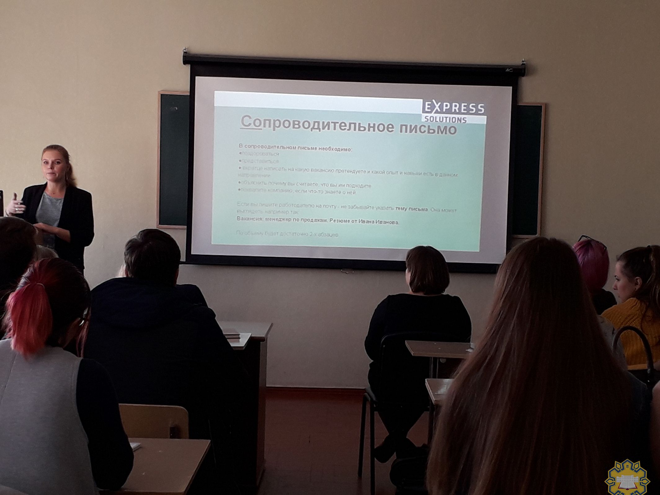 Студенти отримали корисну інформацію про структуру й оформлення резюме, розглянули найпоширеніші помилки, почули цікаві поради, як сподобатися рекрутерам. Пані Ольга розповіла присутнім про власний досвід відбору кандидатів до компанії з транспортної логістики, а також порадила використовувати будь-яку можливість отримати практичні навички: їздити на конференції, виступати перед аудиторією, проходити стажування й практики, брати участь у конкурсах і програмах обміну, долучатися до волонтерської діяльності. Для ідеального резюме важливо все!