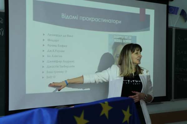 Тренінг №2 «Прокрастинація: рушійна сила чи стримувач успіху?» проводила Верещак Юлія, викладачка факультету іноземних мов ЦДПУ ім. В. Винниченка, координаторка Інформаційного центру ЄС у м. Кропивницькому, фрилансерка, вчителька наукового ліцею. Учасники тренінгу не приховували, наскільки близькою ця тема є для кожного з них, адже сучасний стиль життя вимагає уміння справлятись з багатьма завданнями одночасно та у чітко визначені терміни.