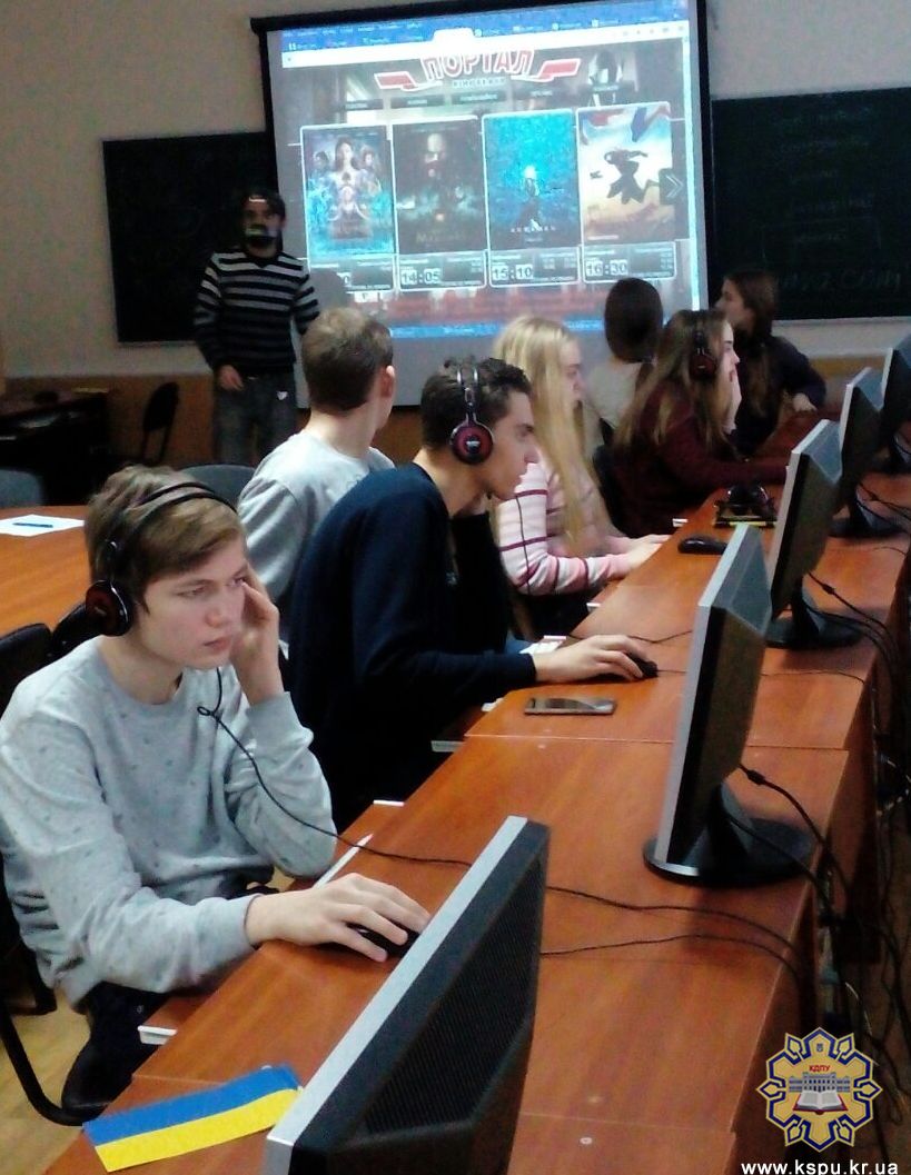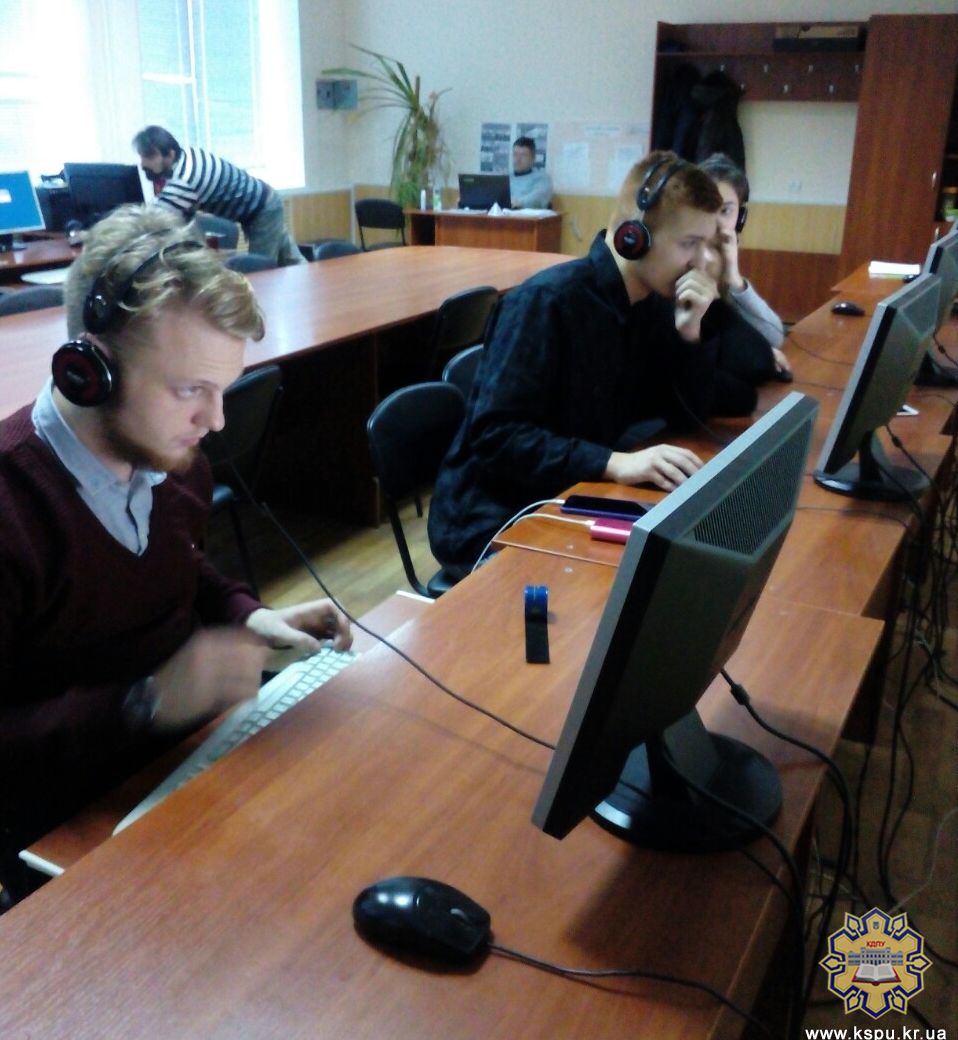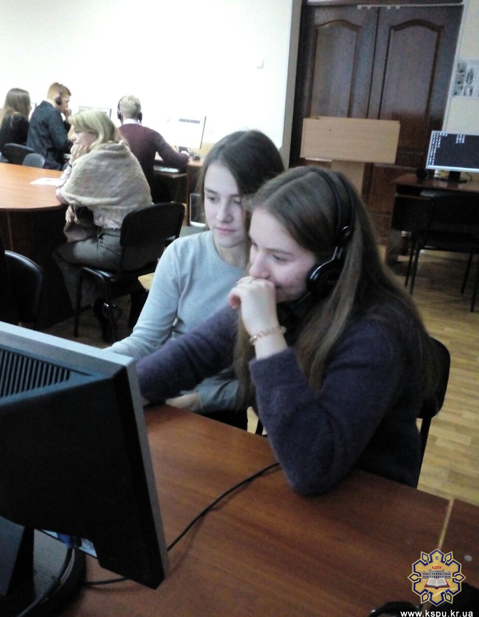 Минулого тижня на факультет іноземних мов завітали учні старших класів НВК «Кіровоградський колегіум». У комп’ютерній лабораторії №611 доцент кафедри перекладу, прикладної та загальної лінгвістики Богдан Вікторович Стасюк провів майстер-клас на тему «Особливості аудіовізуального перекладу». Захід відбувся в рамках профорієнтаційної роботи кафедри з ініціативи заступника декана з навчально-методичної роботи О. С. Леонідова.