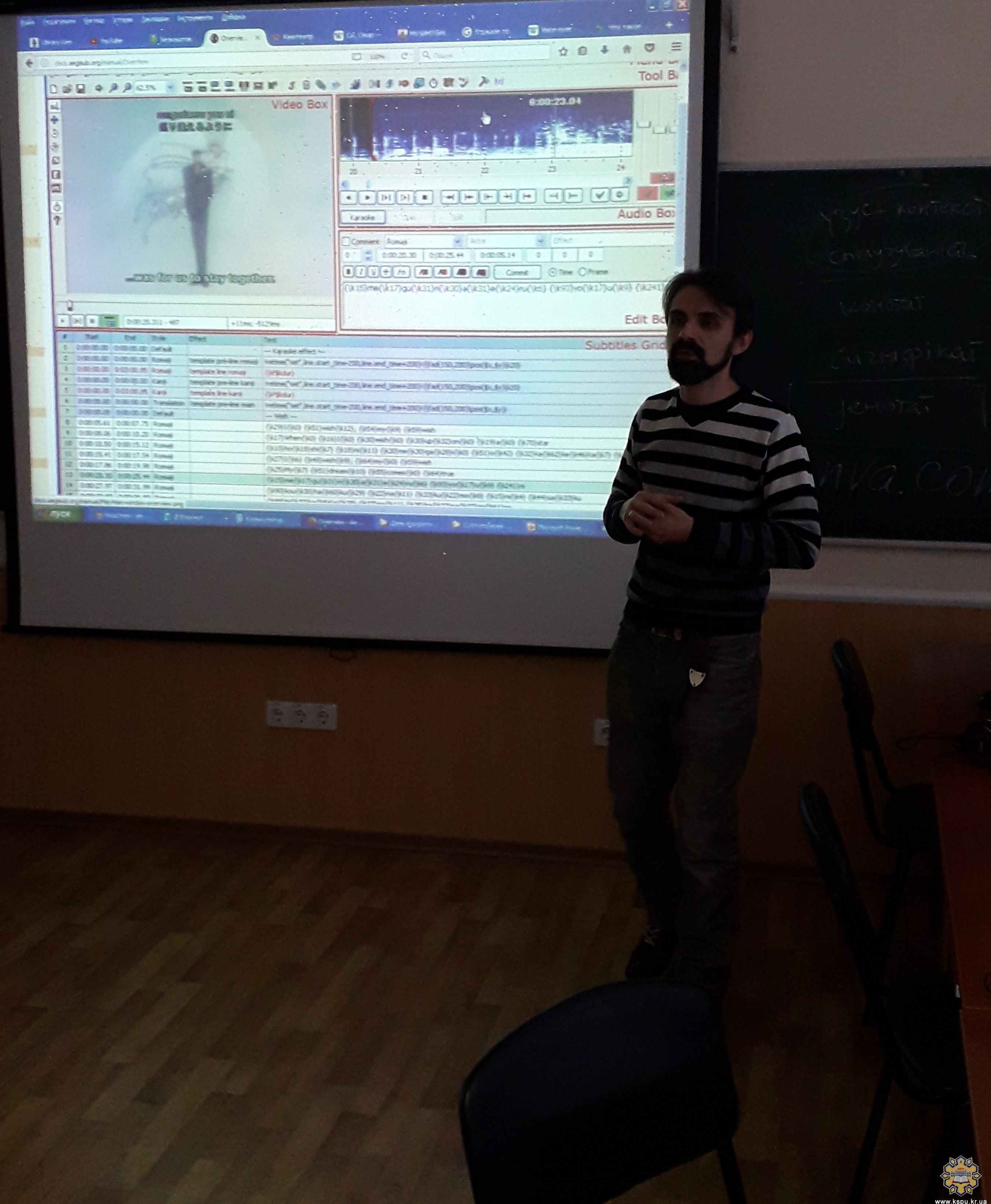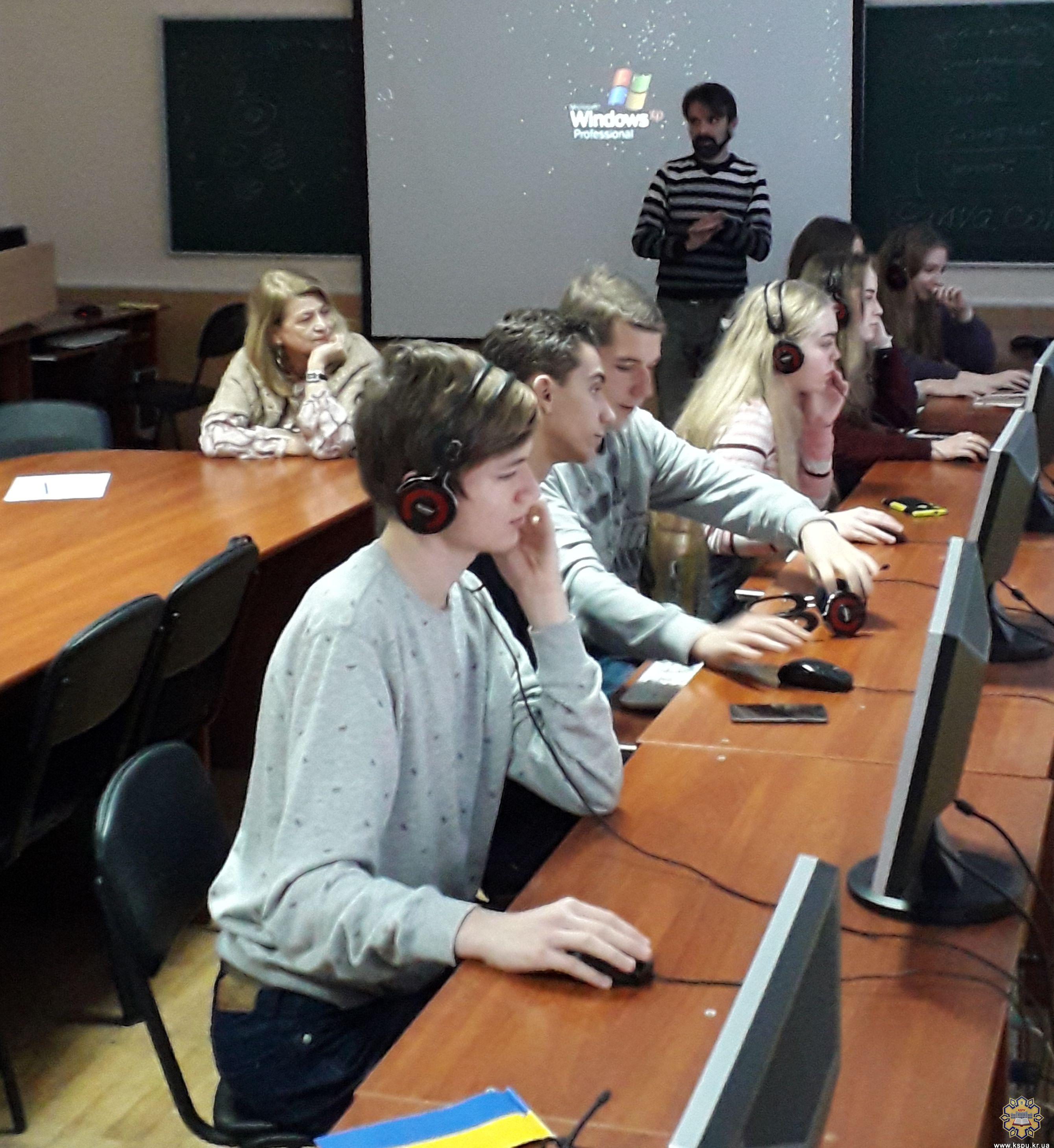 Під час півторагодинної зустрічі з досвідченим перекладачем та натхненним спікером Б.В. Стасюком учні змогли не лише отримати безліч цікавих відомостей про труднощі перекладу кінопродукції та рекламних роликів, а й спробували створити власні субтитри до запропонованого відео, використовуючи спеціальне програмне забезпечення.