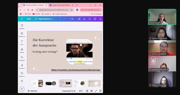 Дарʼя була одним із доповідачів заходу і представила міжнародній аудиторії результати свого практично-дослідницького проєкту на інновативну тему «Interaktive Texterarbeitung auf Instagram: Ein neues Lehrkonzept», виконаного в межах вивчення курсу «DLL 5: Lernmaterialien und Medien» (викладач - доцент І.В. Пянковська).