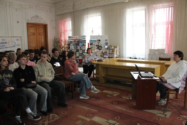 19 березня 2025 року в обласній бібліотеці для юнацтва імені Євгена Маланюка для студентів ВСП «Кібернетичний фаховий коледж» ЕТІ імені Роберта Ельворті професор кафедри української філології та журналістики С.Л.Ковтюх провела іміджевий захід на тему: «Чому важливо утверджувати український символічний простір».