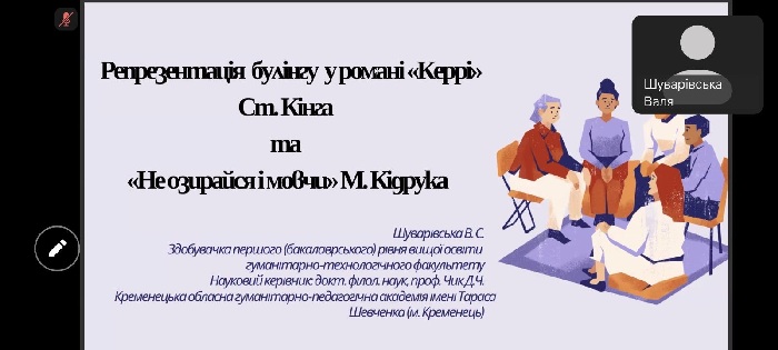 Шуварівька Валентина Сергіївна, здобувачка першого (бакалаврського) рівня вищої освіти. Науковий керівник: доктор філологічних наук, професор Д. Ч. Чик. Кременецька обласна гуманітарно-педагогічна академія імені Тараса Шевченка (м. Кременець).