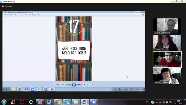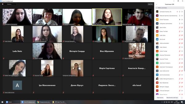 27 листопада 2020 року кафедра української мови вперше в ZOOM провела традиційну лінгвістично-гумористичну забаву «Фразеологія – як життя, життя – як фразеологія». Змагалися дві команди другокурсників – «Захмарні» (капітан Максим Бричка) та «Валер’ян Підмогильний» (капітан Єлизавета Єрещенко).