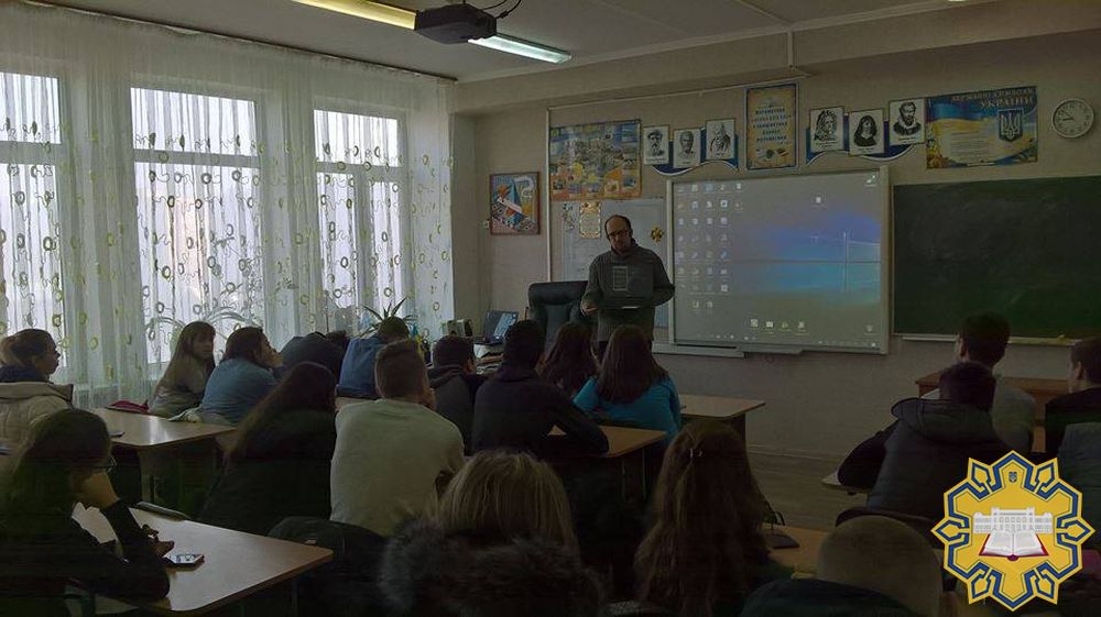 Роман Пикалюк, викладач кафедри, сертифікований тренер з медіаграмотності розповів про такі явища, як маніпуляції та дискримінація в ЗМІ, фейки та мова ворожнечі. Були розглянуті приклади маніпуляцій та дискримінації в телевізійних сюжетах, інтернет-ЗМІ та соцмережах. Учні познайомились із практичними інструментами перевірки інформації, що подається в ЗМІ.