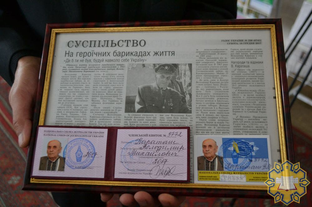 Із цією людиною пов’язано безліч майже фантастичних історій. Володимир Караташ боровся з двома тоталітарними системами – нацистською і радянською. Під час Другої світової війни за підривну діяльність фашисти розстріляли батька, а Володимир зміг утекти; був у керівництві підпілля воркутинського табору, де виготовили для повстання кількасот гранат, другий смертний вирок пережив, бо замінили таборами, хоч майже півроку протримали в камері смертників; був активним учасником Кенгірського повстання, чудом залишився живий. Після таборів навчався на факультеті іноземних мов Одеського університету, викладав англійську в сільській школі. Але не перестав бути справжнім патріотом і борцем за Україну. У радянські часи (як провідник Народного руху) і в часи Незалежності вів активну громадську діяльність. Брав участь і в Революції Гідності. Готовий був поїхати на російсько-українську війну...