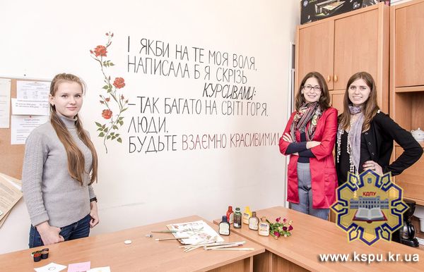 На кафедрі видавничої справи та редагування (філологічний факультет КДПУ ім. В. Винниченка) завдяки кропивницьким активістам з Фундації регіональних ініціатив, серед яких є і випускники факультету філології та журналістики, з’явилася поетична стіна з віршованими рядками Ліни Костенко. Це вже 9 локація у рамках проекту “Поезія стін”.