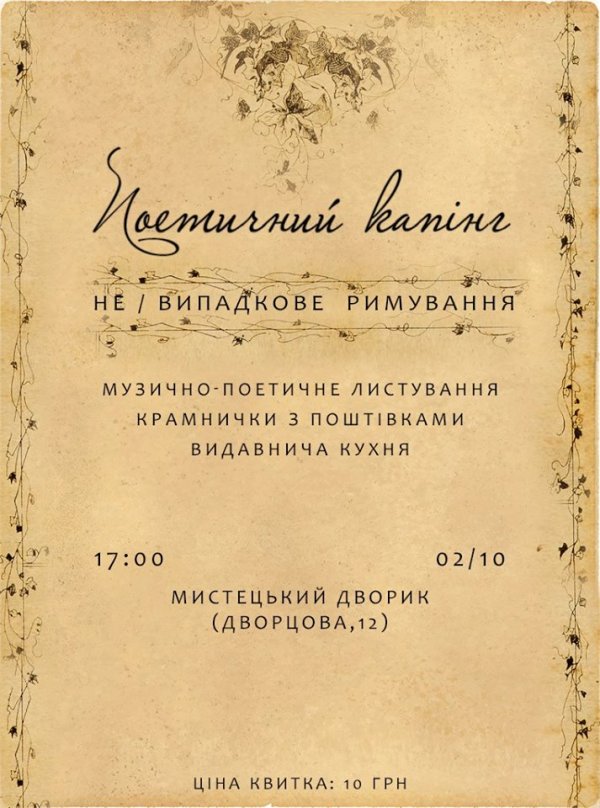 Поезія, проза та музика у формі листів, мистецькі інсталяції, крамнички з поштівками та іншими дрібничками.