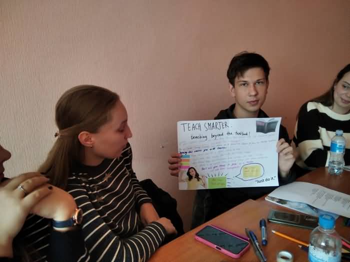 Звичайне, за розкладом, заняття — і абсолютно надзвичайні студенти! Здобувачі вищої освіти освітньої програми «Англійська й німецька мови та зарубіжна література» другого (магістерського) рівня — Коркіш О., Катречко В., Літвінчук Д., Палій М., Подскальнюк О., Христук А., Шокодько А. (група АН25М) — за 20 хвилин можуть, наприклад, створити рекламний постер.