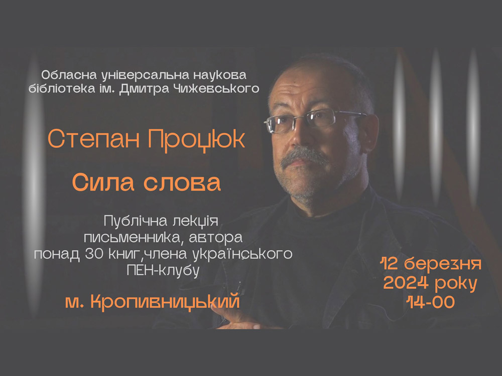 12 березня в науковій бібліотеці Центральноукраїнського державного університету імені Володимира Винниченка відбулася гостьова лекція літературознавця, прозаїка, есеїста Степана Процюка.