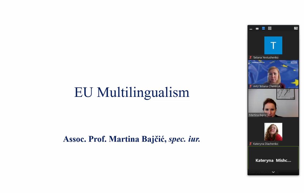 У березні студенти старших курсів спеціальності "Переклад" прослухали короткий курс оглядових лекцій з права ЄС та проблем перекладу НПА ЄС від Martina Bajcic, доцентки кафедри іноземних мов факультету права Рієцького університету (Хорватія). Судячи із захоплених відгуків, дізналися багато чого нового й цікавого.