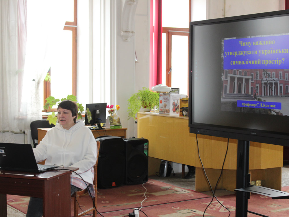 19 березня 2025 року в обласній бібліотеці для юнацтва імені Євгена Маланюка для студентів ВСП «Кібернетичний фаховий коледж» ЕТІ імені Роберта Ельворті професор кафедри української філології та журналістики С.Л.Ковтюх провела іміджевий захід на тему: «Чому важливо утверджувати український символічний простір».