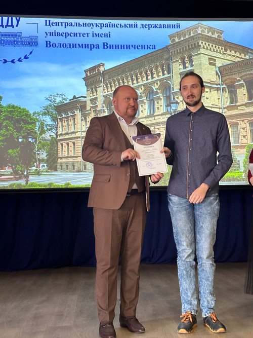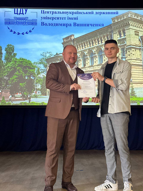 студент І курсу другого (магістерського) рівня вищої освіти факультету фізичного виховання Диченко Владислав Олександрович – «Удосконалення методики розвитку силових і швидкісно-силових якостей у старшокласників засобами мобільного додатку «MY JUMP LAB»» (науковий керівник – кандидат педагогічних наук, доцент Маркова Олена Віталіївна);