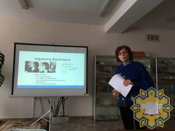 В рамках співпраці з Австрійським бюро обмінів (OEAD) 26 листопада відбулась чергова лекція з блоку «Творчі жінки Австрії» /«Kreative Frauen Österreichs» на тему «Життя та творчість Інгеборг Бахманн» / «Stationen und Ereignisse im Leben von Ingeborg Bachmann»
