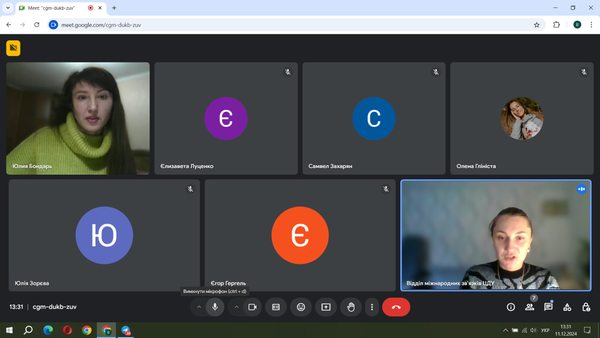 Представники відділу Юлія Бондар та Тетяна Саркісян розповіли студентам про програми міжнародної академічної мобільності, проєкти та стипендіальні програми, у яких студенти ЦДУ можуть брати участь у межах двосторонніх міжнародних договорів між ЦДУ та закордонними ЗВО. До зустрічі також доєднався завідувач кафедри менеджменту та підприємництва професор Олександр Левченко, який є координатором німецького проєкту «DILLIGUS».