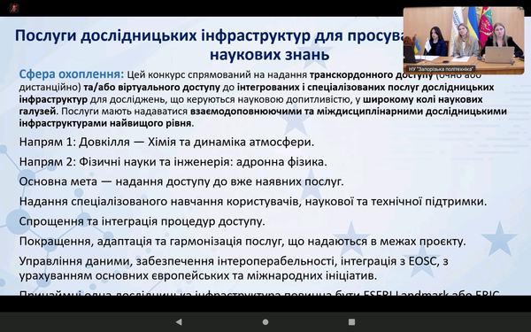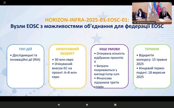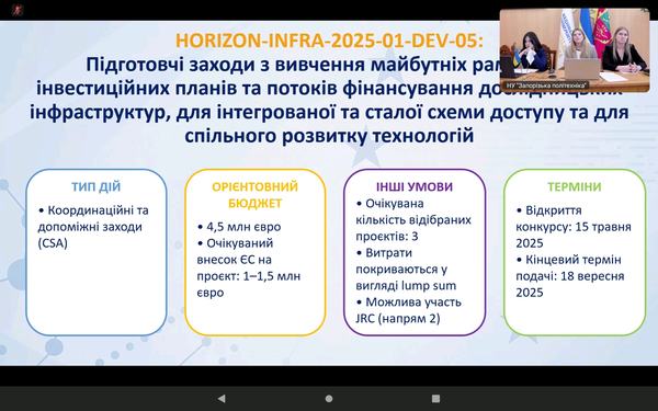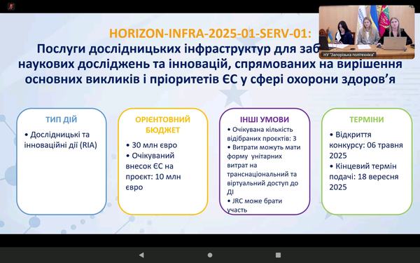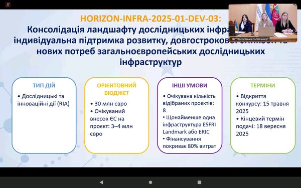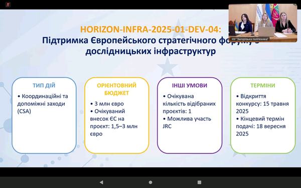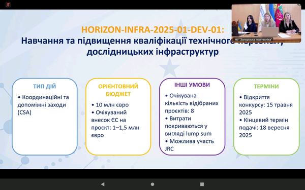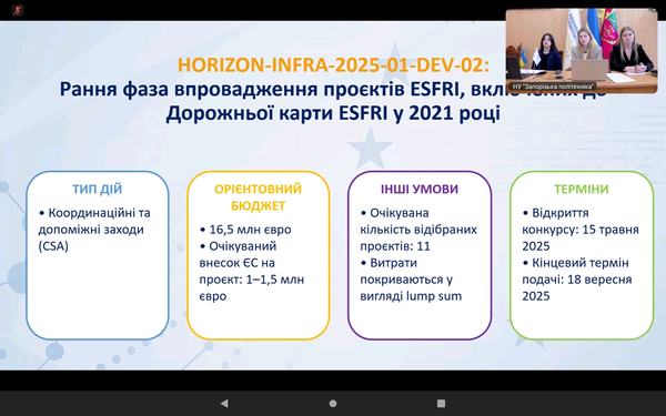 Захід організовано Національним контактним пунктом за напрямом «Дослідницькі інфраструктури» у співпраці з відділом проєктної діяльності Національного університету «Запорізька політехніка».