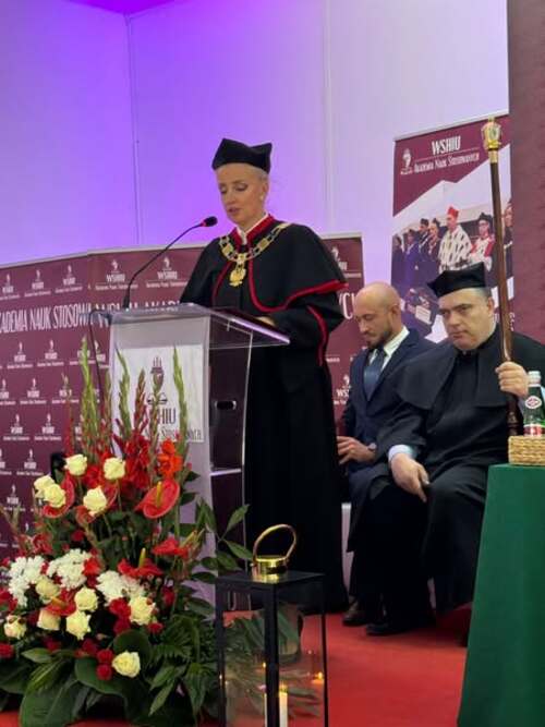Із вітальними словами до студентів, викладачів та гостей звернулася засновниця університету пані Магдалена Гурська, підкресливши головні цінності WSHIU — знання, повагу та постійний розвиток.