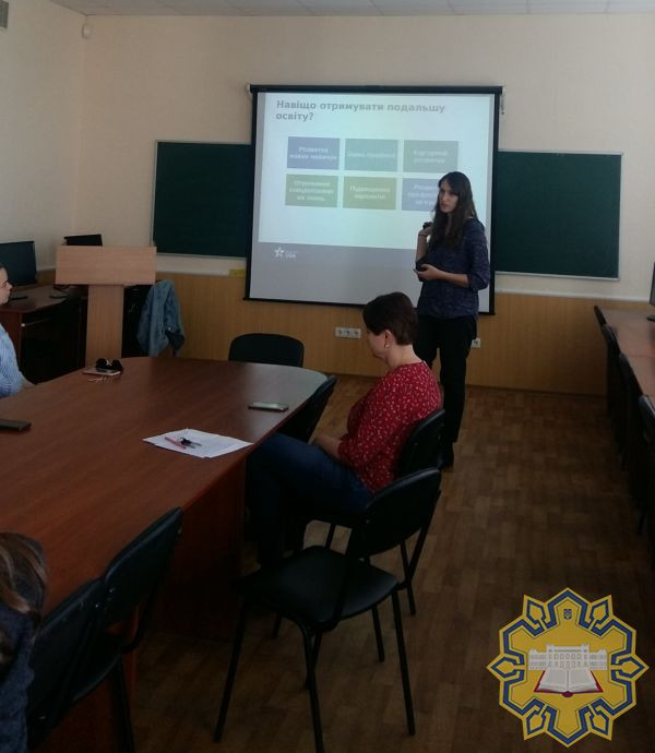 14 травня 2019 року відділ міжнародної співпраці університету організував зустріч студентів університету з Неллі Петлик, представником Консультативного центру мережі EducationUSA у Києві, яка надала відповіді на запитання студентів щодо навчання у США. Під час презентації Неллі проконсультувала студентів, що прийшли на зустріч, щодо можливостей отримання вищої освіти у США на рівні магістратури та докторантури, а також розповіла про стипендіальні програми уряду США.