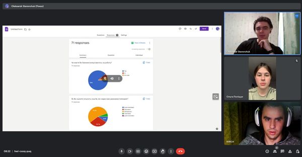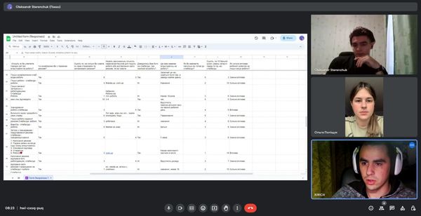 Участь у команді взяли Іванов Кирило, студент третього курсу, спеціальності Професійна освіта (Цифрові технології), групи ЦТ21Б; Стеренчук Олександр, студент другого курсу спеціальності Комп’ютерні науки, групи КН22Б та Поліщук Ольга, студентка першого курсу, спеціальності Менеджмент, групи МЛА23Б. Цей різноманітний склад команди дозволяє використовувати різні досвід та підходи до вирішення завдань проєкту.