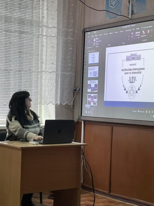 Викладачі ознайомили учнів зі спеціальностями 5-ти факультетів нашого університету, розказали особливості навчання та студентського життя. Особливу увагу приділили спеціальностям та освітнім програмам кафедри. Доцент Зарубіна А.В. розказала про особливості ОПП Середня освіта (Географія) та краєзнавчо-туристична робота; професор Дефорж Г.В. – про ОПП Середня освіта (Біологія та здоров’я людини, Хімія); доцент Сірик Е.П. – про ОПП Середня освіта (Фізика та астрономія, Інформатика), робототехніка; доцент Терещенко О.В. – про ОПП Середня освіта (Природничі науки). Також викладачі акцентували увагу на організації навчально-виховного процесу на факультеті математики, природничих наук та технологій, переваги ЦДУ ім. В. Винниченка серед ЗВО України. Під час зустрічі приємним моментом було спілкування з випускниками нашого факультету, сьогоднішніми вчителями Соколівського ліцею. В кінці зустрічі представники факультету та адміністрації ліцею домовились про подальшу співпрацю та спільні проєкти. Чекаємо учнів та вчителів Соколівського ліцею в стінах нашого факультету. До зустрічі!